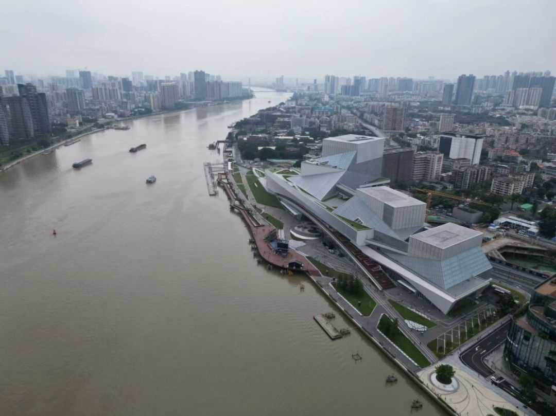 2024年5月1日,广州白鹅潭大湾区艺术中心像一艘巨轮,泊岸在白鹅潭畔珠江边。