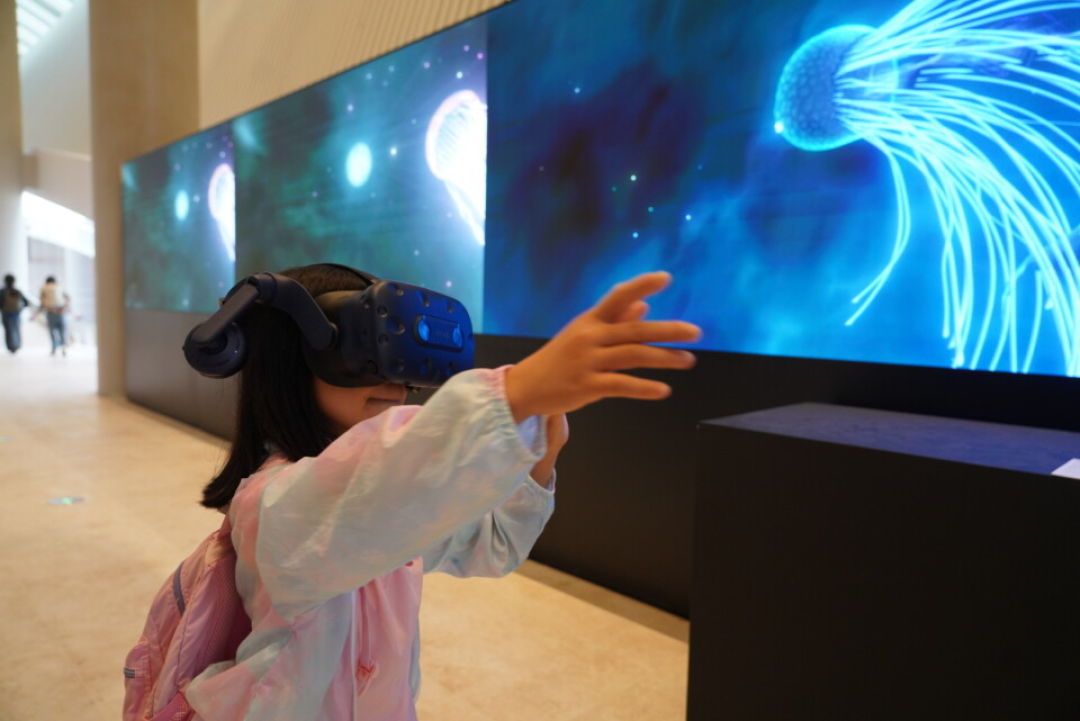 小一又友在广东好意思术馆新馆体验VR海底寰球。